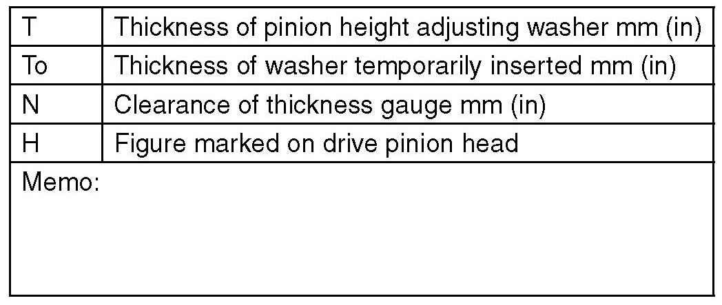 3) Obtain the thickness of pinion height adjusting washer to be inserted from the following formula, and replace the temporarily installed washer with this one.