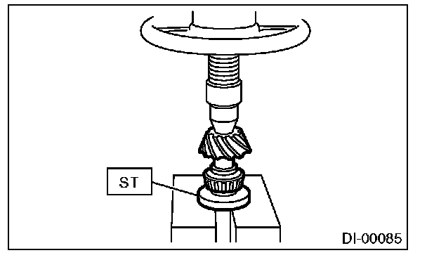 3) Install the selected pinion height adjusting washer on drive pinion, and press the rear bearing cone into position with ST.