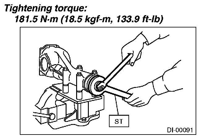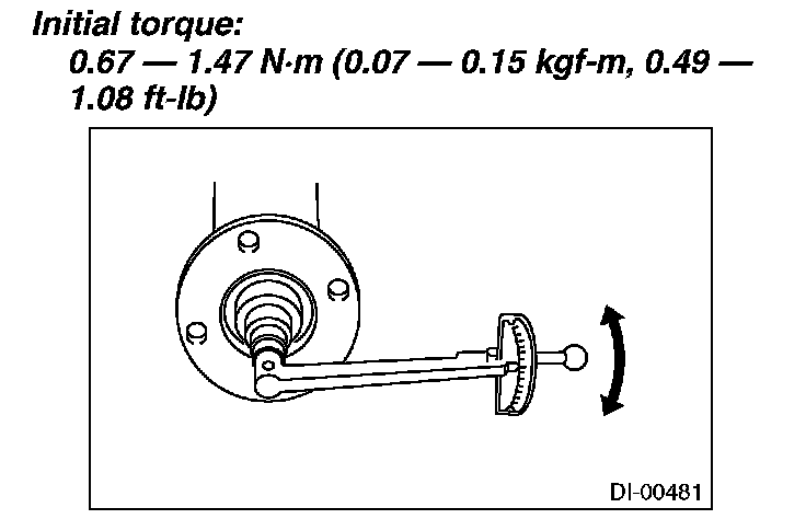 5) Turn the ST1 by hand to smooth the bearing, and tighten the self-locking nut while measuring the initial load or initial torque with a spring scale or torque wrench. Select the preload adjusting washer and spacer so that the specified preload is obtained when nut is tightened to the specified torque.