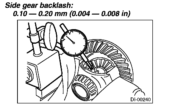 2) Adjust the backlash as specified by selecting side gear thrust washer.