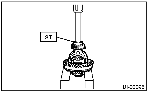 3) Insert the ST1 into carrier with the pinion height adjusting washer and rear bearing cone fitted onto it.