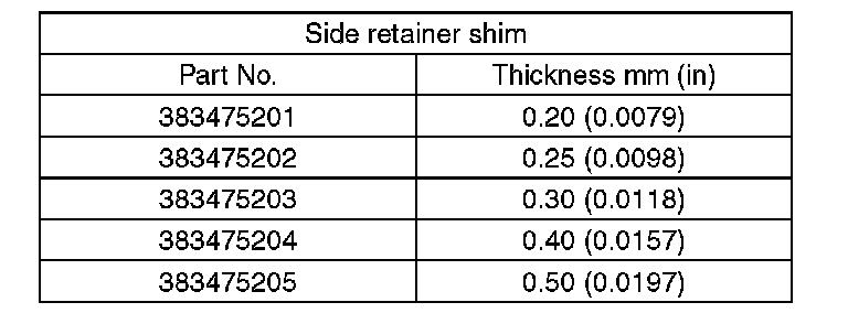 3) Install the side retainer shims and O-ring to retainers RH and LH on which they were installed.