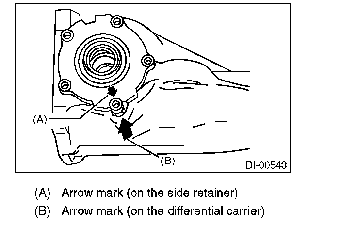 4) Align the arrow mark on the differential carrier with the arrow mark on the side retainer during installation.