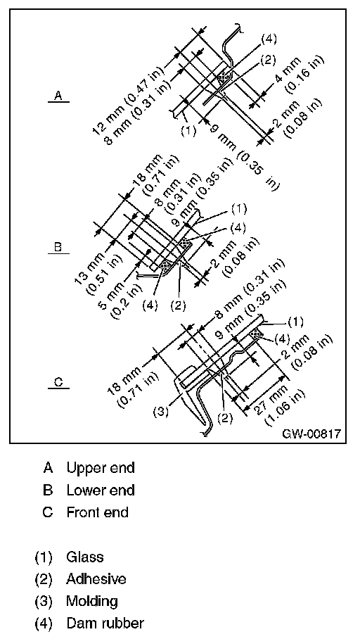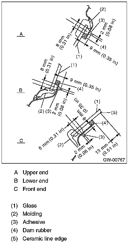- For minimum drying time and vehicle standing time before driving after bonding, follow instructions or instruction manual from the adhesive manufacturer.