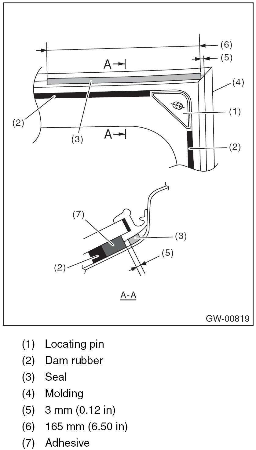 - For minimum drying time and vehicle standing time before driving after bonding, follow instructions or instruction manual from the adhesive manufacturer.