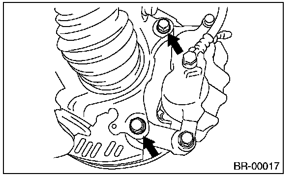 2) Remove the caliper body assembly from housing, and suspend it from the strut using a wire.