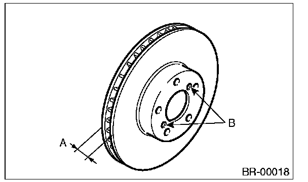If it is difficult to remove the disc rotor from the hub, drive an 8 mm bolt into the threaded section (B) of the rotor, then remove the rotor.
