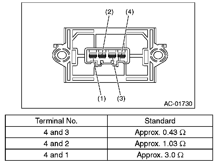 BLOWER RESISTOR (MANUAL A/C MODEL)INSPECTION
