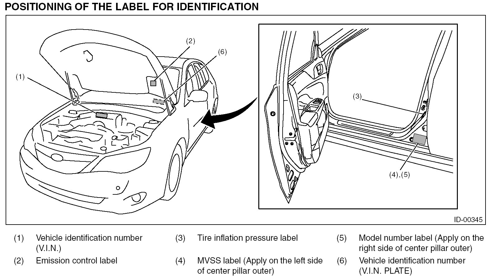 IDENTIFICATION1. IDENTIFICATION NUMBER & LABEL LOCATIONS