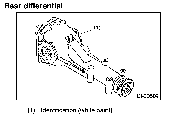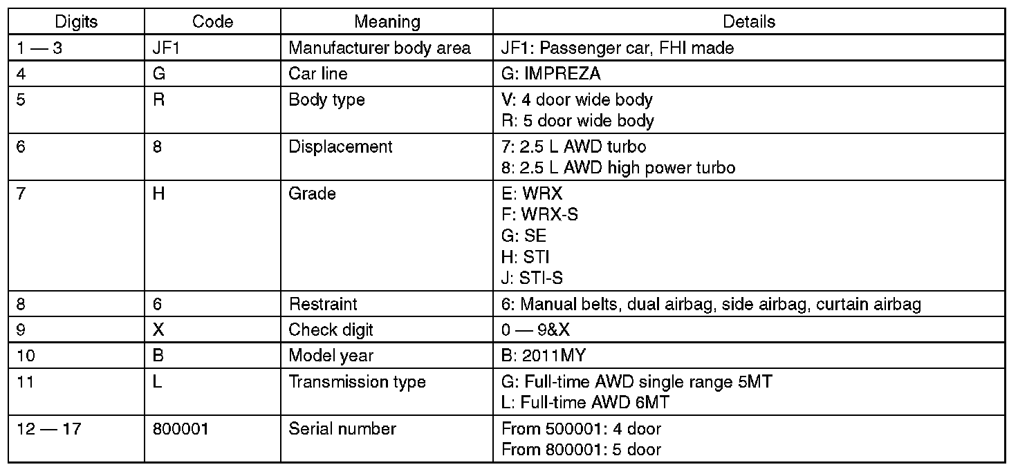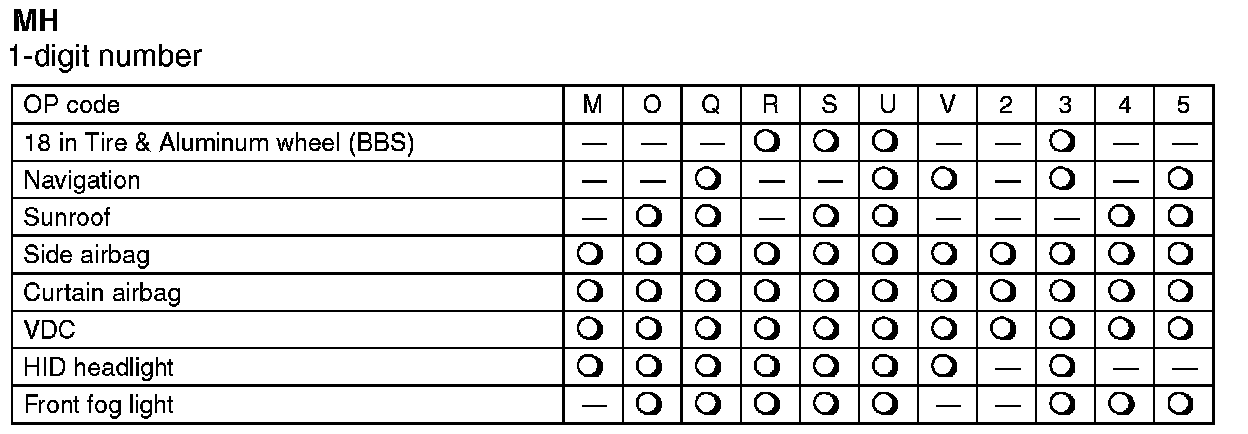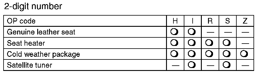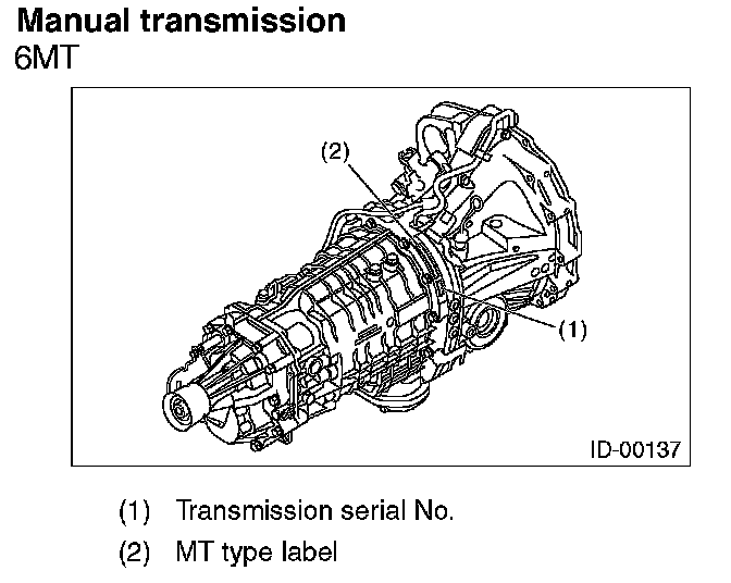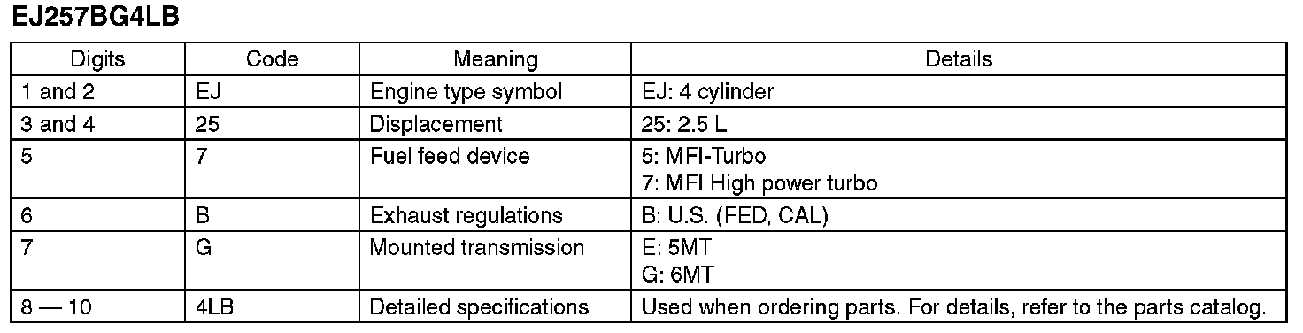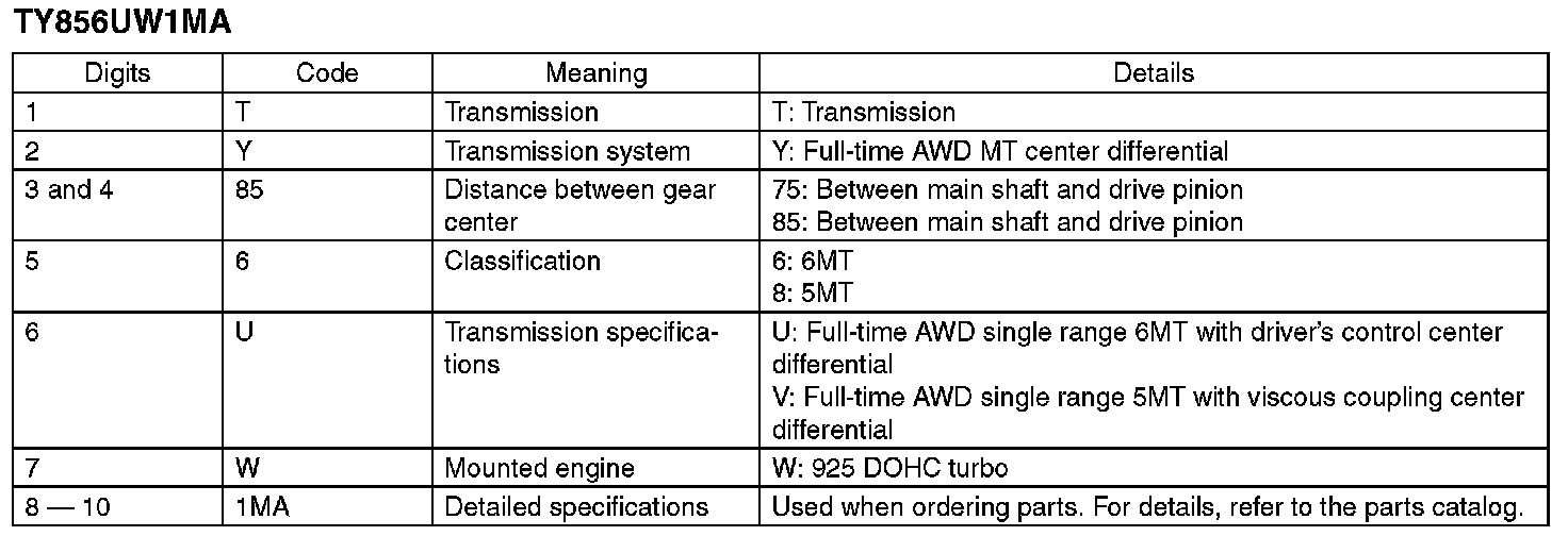 The model number label indicates: the applied model, the option code, the trim code, the engine type, the transmission type, and the exterior color code. This information is helpful when placing orders for parts.