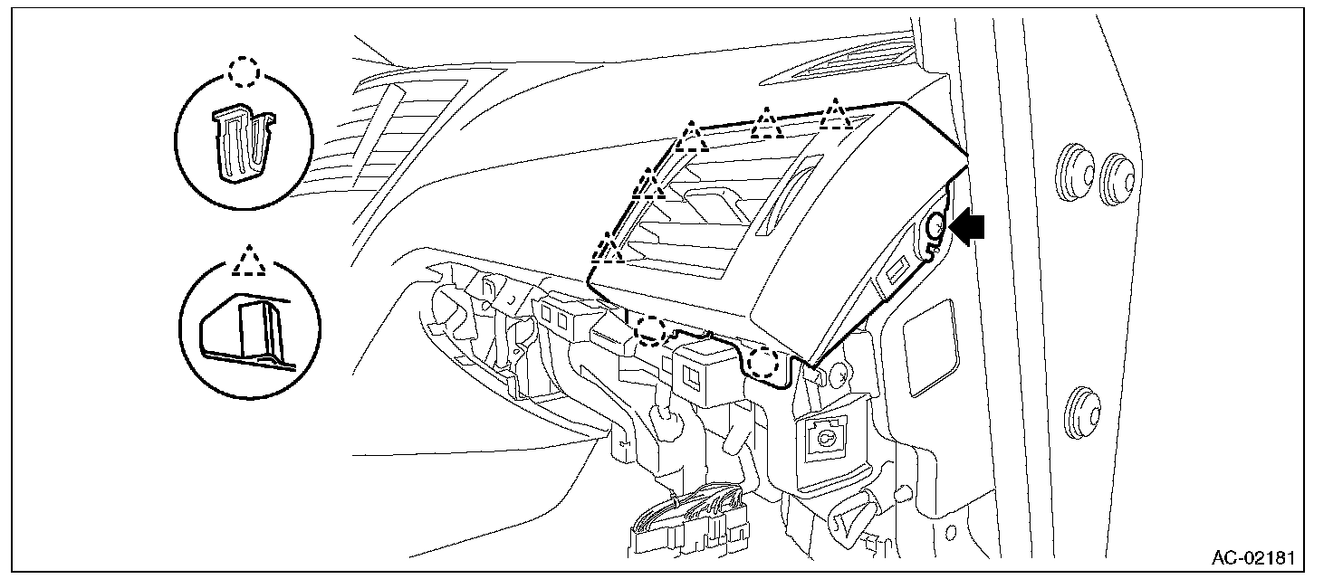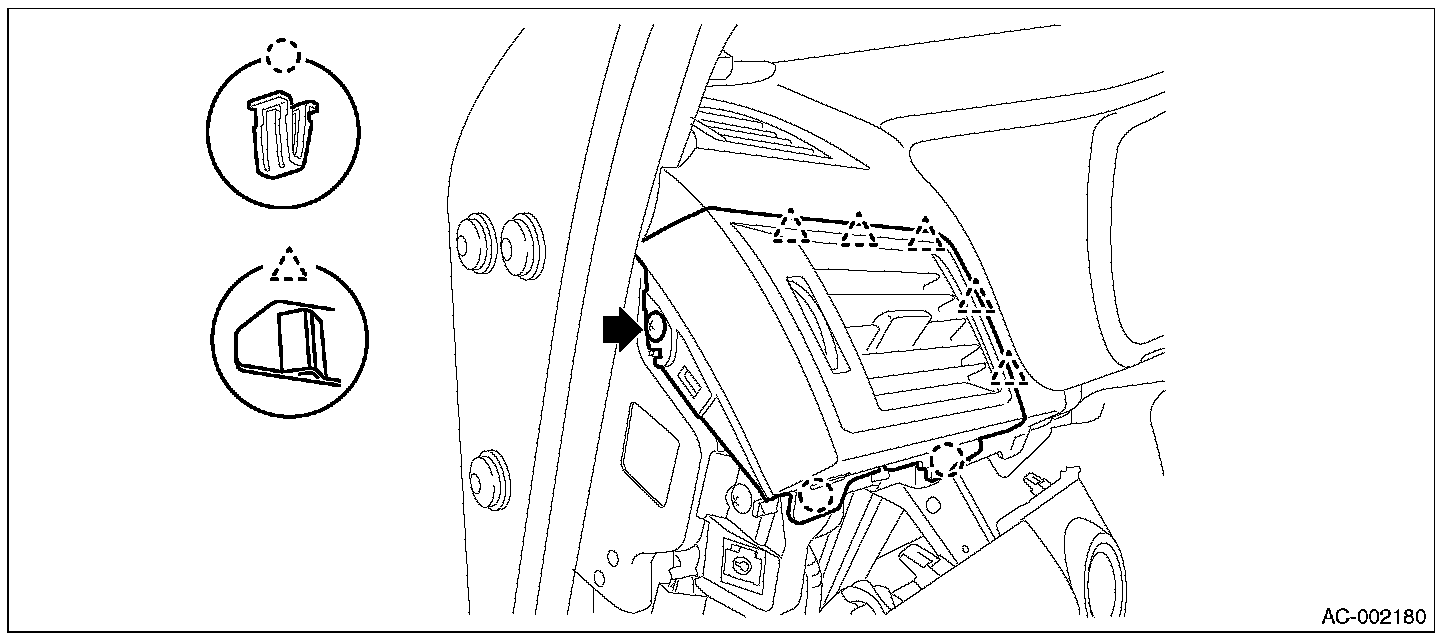2. Release the claws and clips, then detach the side vent grille assembly RH.