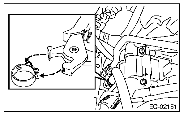 1. Install the PCV hose assembly, then lock by fitting the ST on the clamp protrusion.