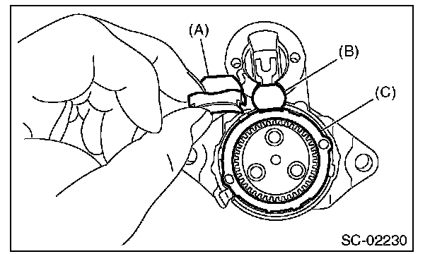 3. Pass stopper (B) through the shaft assembly, and attach snap ring (A).