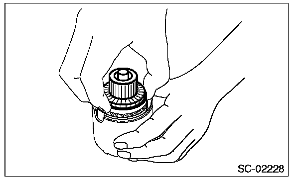 4. Assemble the overrunning clutch, internal gear assembly, shaft and shift lever as a single unit into the starter housing assembly.