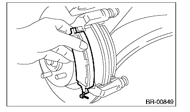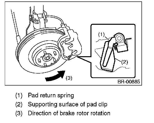 ^ If the pad return spring is deformed or damaged, replace the brake pad.