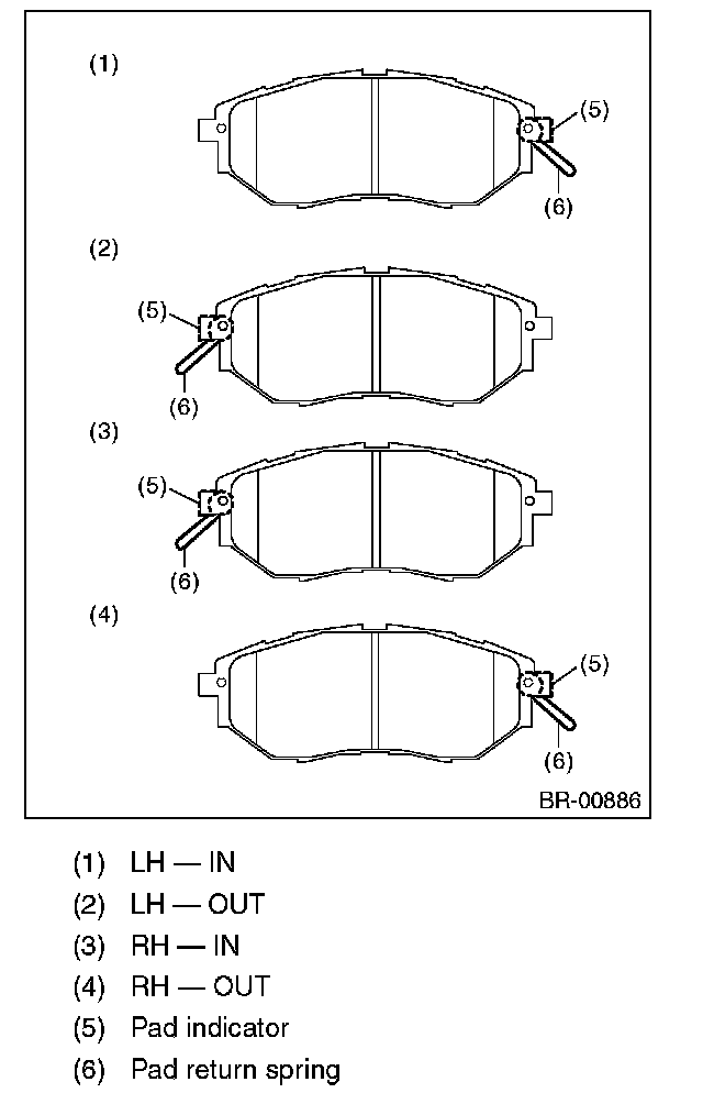 ^ Wear indicators are installed on the inner and outer disc brake pads.