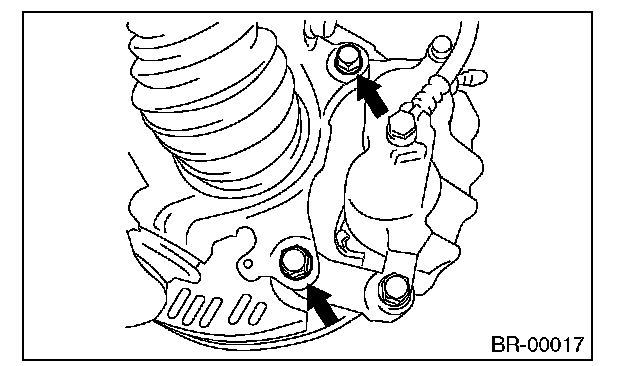 2) Remove the caliper body assembly from housing, and suspend it from the strut using a wire.