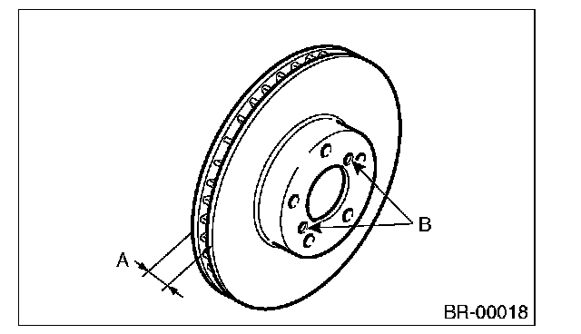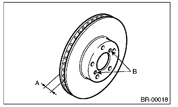 If it is difficult to remove the disc rotor from the hub, drive an 8 mm bolt into the threaded section (B) of the rotor, then remove the rotor.