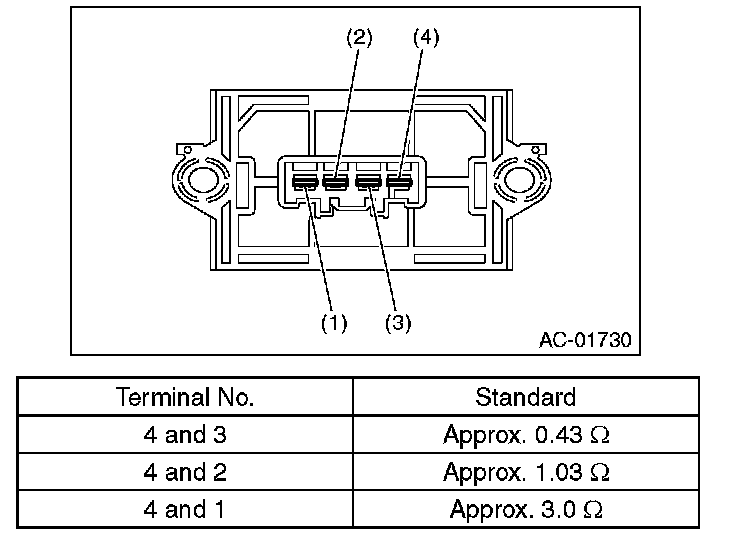 2. Check the resistance between blower resistor terminals.