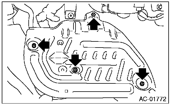 4. Remove the bolts and nut, and then remove the engine ECM protect cover.