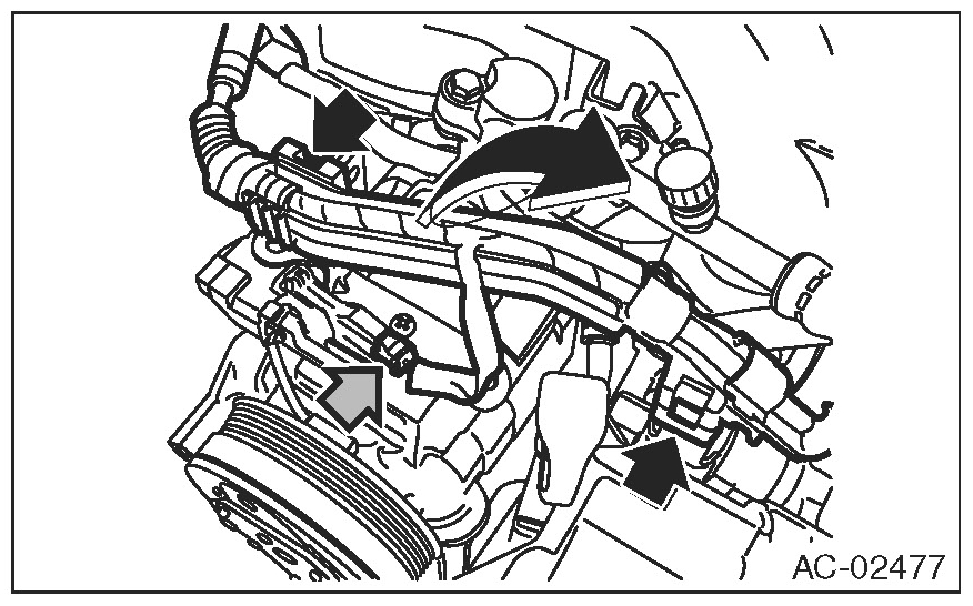 8. Disconnect the compressor connector and clip, and move the generator harness to the right.