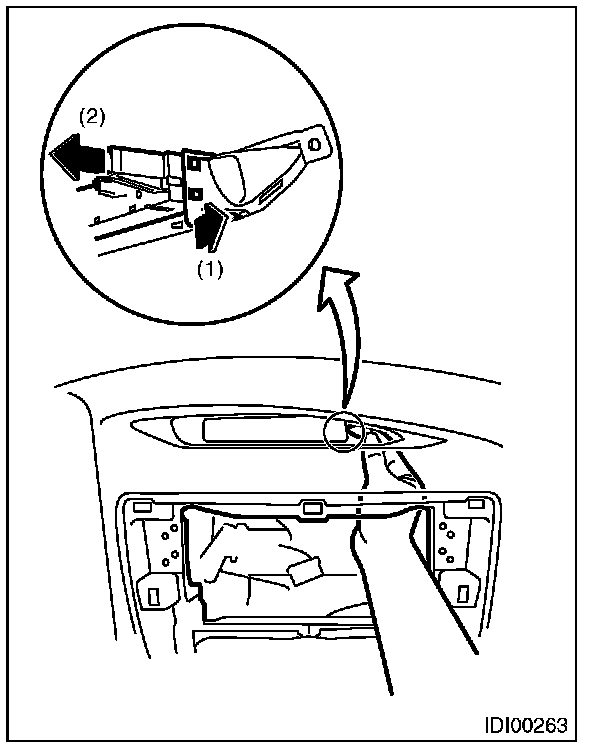 4. Insert hands from the audio space, disengage the tabs of the bracket on the back side of the instrument panel, and push the clock.