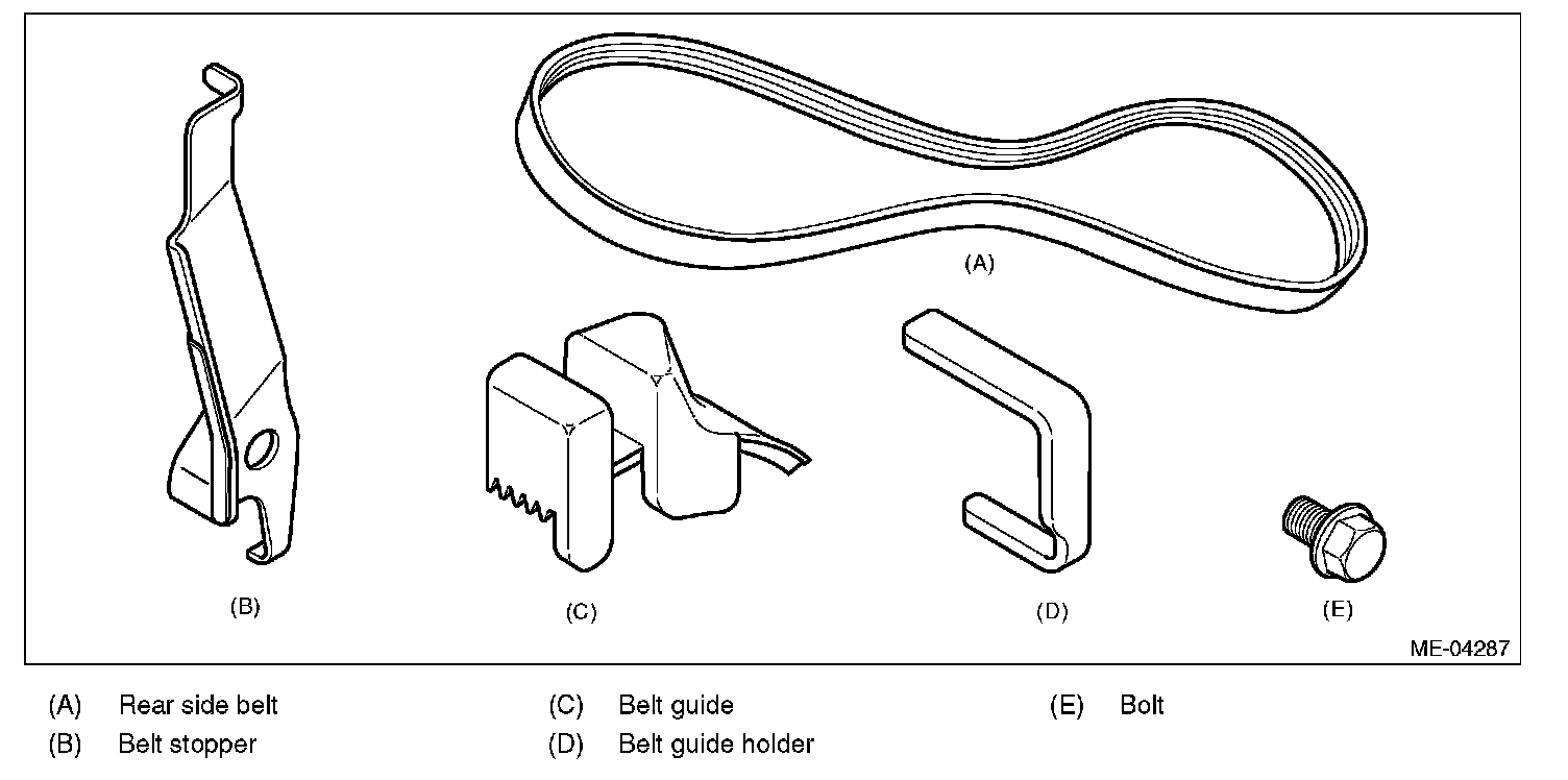 ^ Be careful not to let oil, grease or coolant contact a new rear side belt.