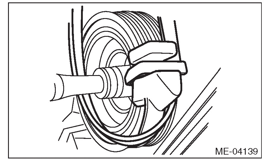 (2) The rib of the rear side belt is securely placed on the groove of the A/C compressor pulley.