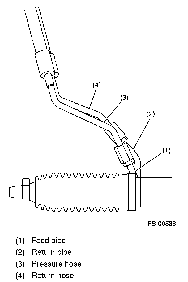 6) Disconnect the return hose from return pipe and disconnect the pressure hose from feed pipe.