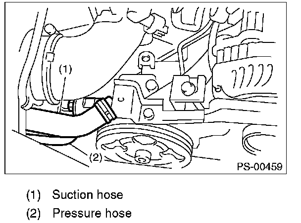 8) Disconnect the suction hose and pressure hose from oil pump.