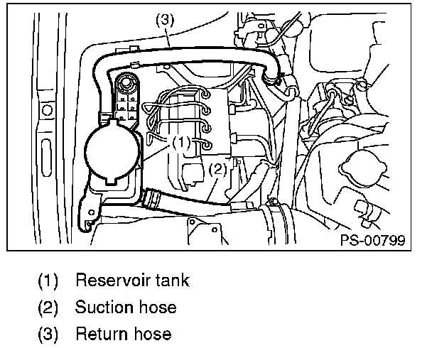 9) Disconnect the suction hose and return hose from the reservoir tank.