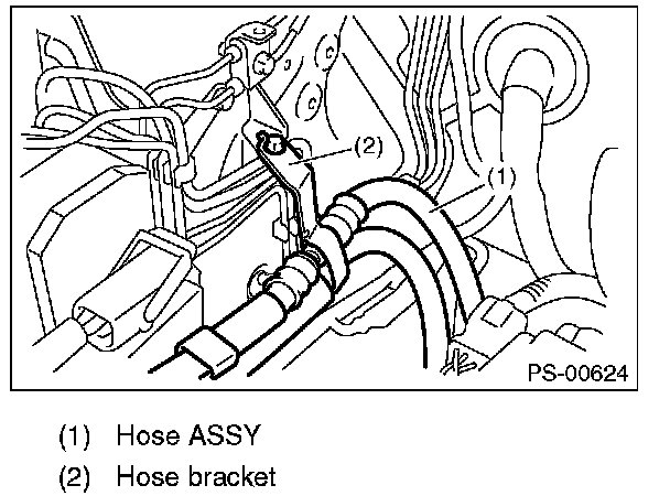 10) Remove the hose bracket and take out the hose assembly from vehicle.