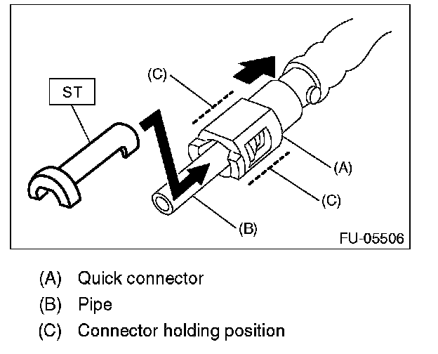 1. Attach ST to the pipe and push ST in the direction of arrow mark to disconnect the quick connector.