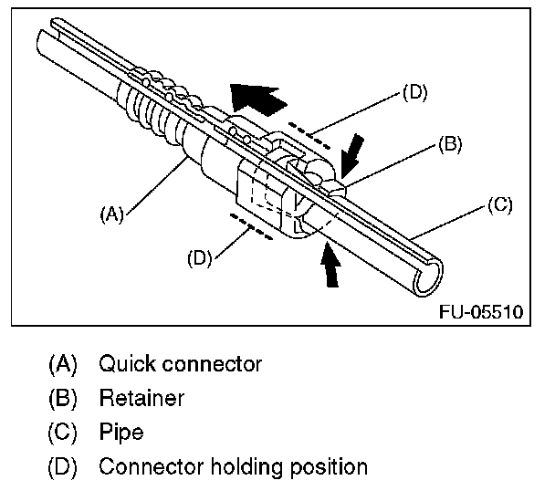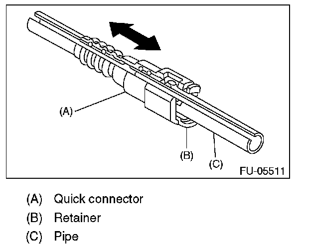 1. Push the retainer in the direction of the arrow, disconnect the quick connector from pipe.