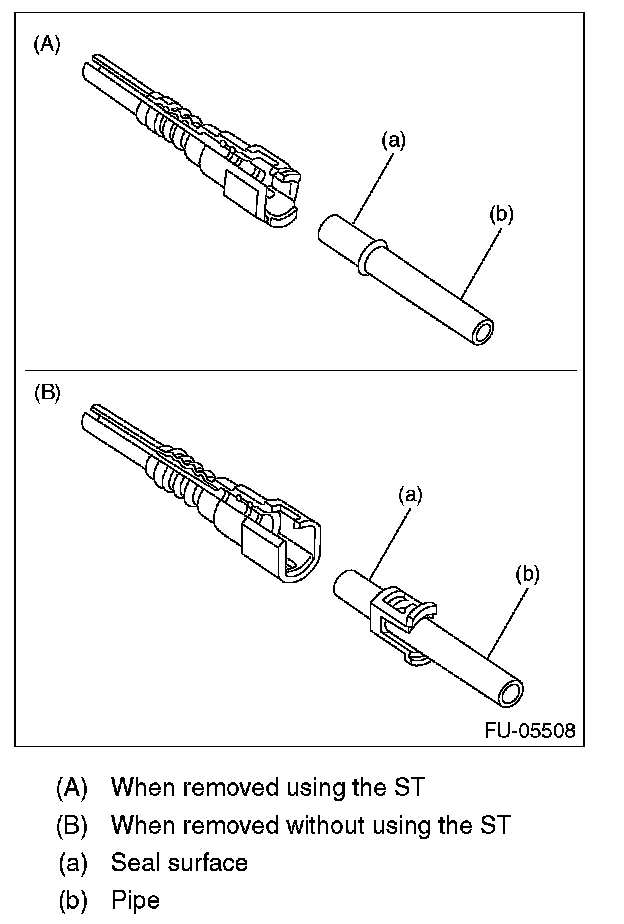 - If the connector and pipe are sticking to each other, push and pull the connector with ST pushed, and then pull the connector after it starts moving freely.