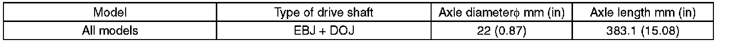 Rear Drive Shaft Dimensions