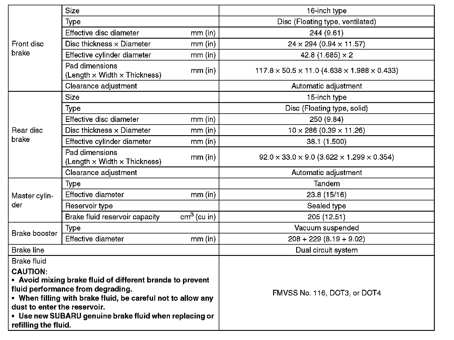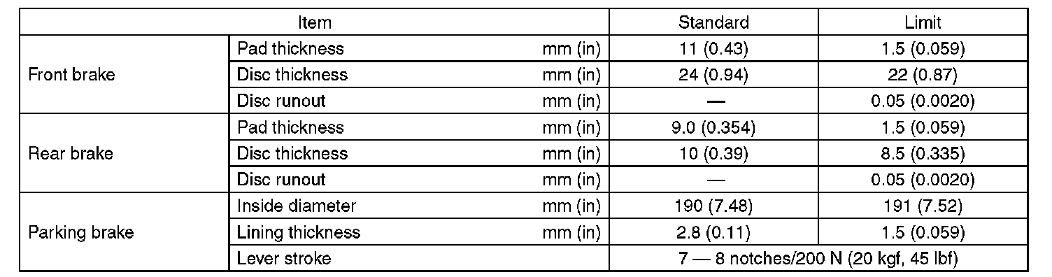 Refer to "PARKING BRAKE" for parking brake specifications.