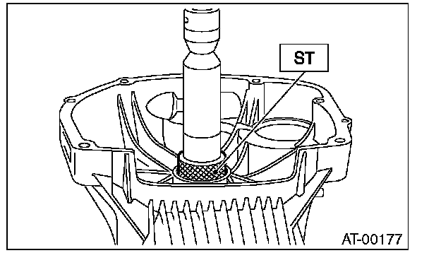 2) Press-fit the oil seal to the converter case using ST.