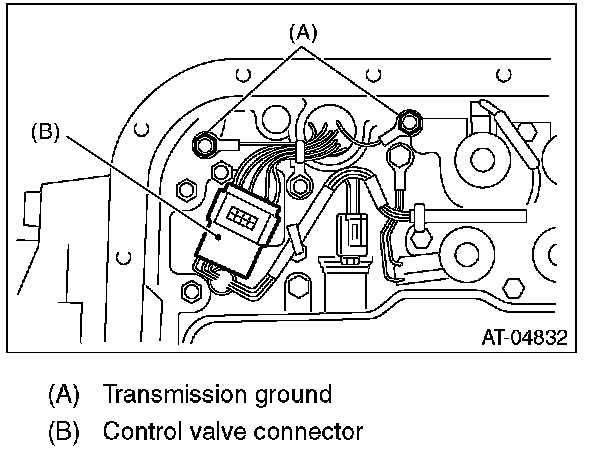22) Disconnect the control valve connector and transmission ground terminal.