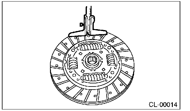 If deflection exceeds the specified value at the outer circumference of the facing, replace the clutch disc.