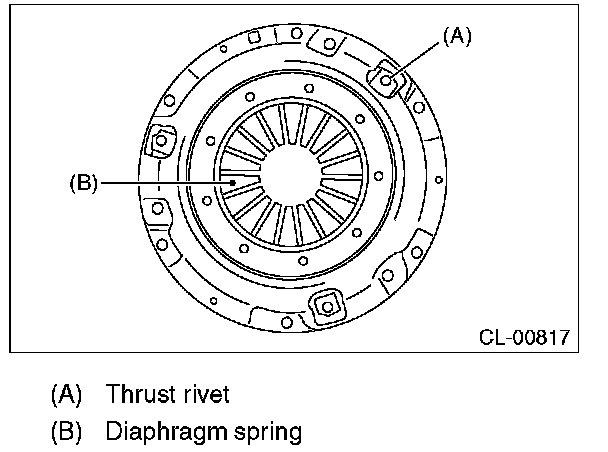 2) Damaged or worn bearing contact area at the center of diaphragm spring