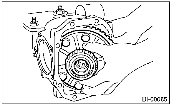Be careful not to hit the teeth of hypoid driven gear against the differential carrier.