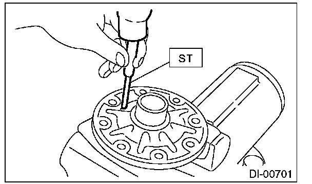 11) Remove the pinion shaft lock pin from driven gear side using ST.