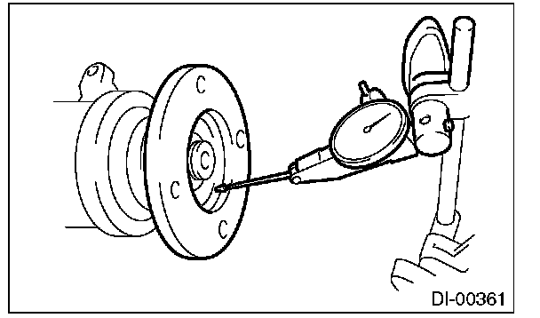 2) Set a dial gauge at a companion flange surface (mating surface of propeller shaft and companion flange), and then measure the companion flange runout.