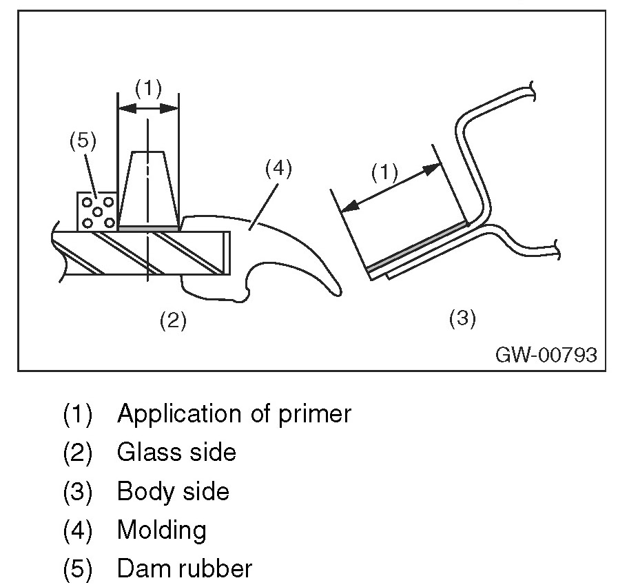 - For minimum drying time and vehicle standing time before driving after bonding, follow instructions or instruction manual from the adhesive manufacturer.