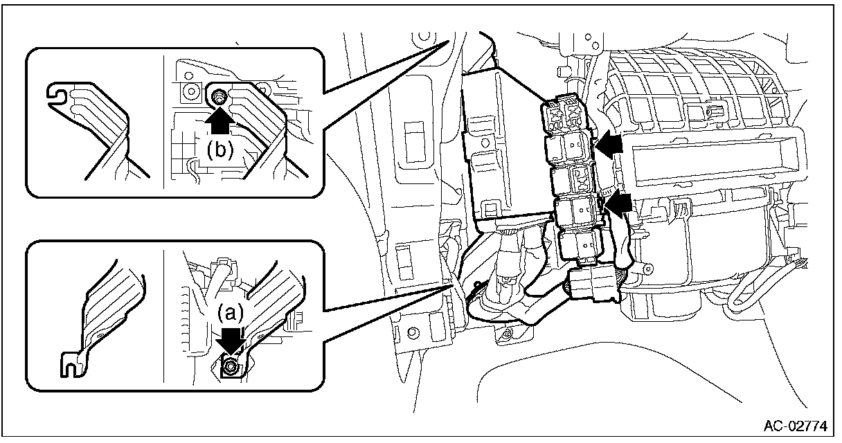 3. Loosen the nut (b), and remove the engine control module (ECM).