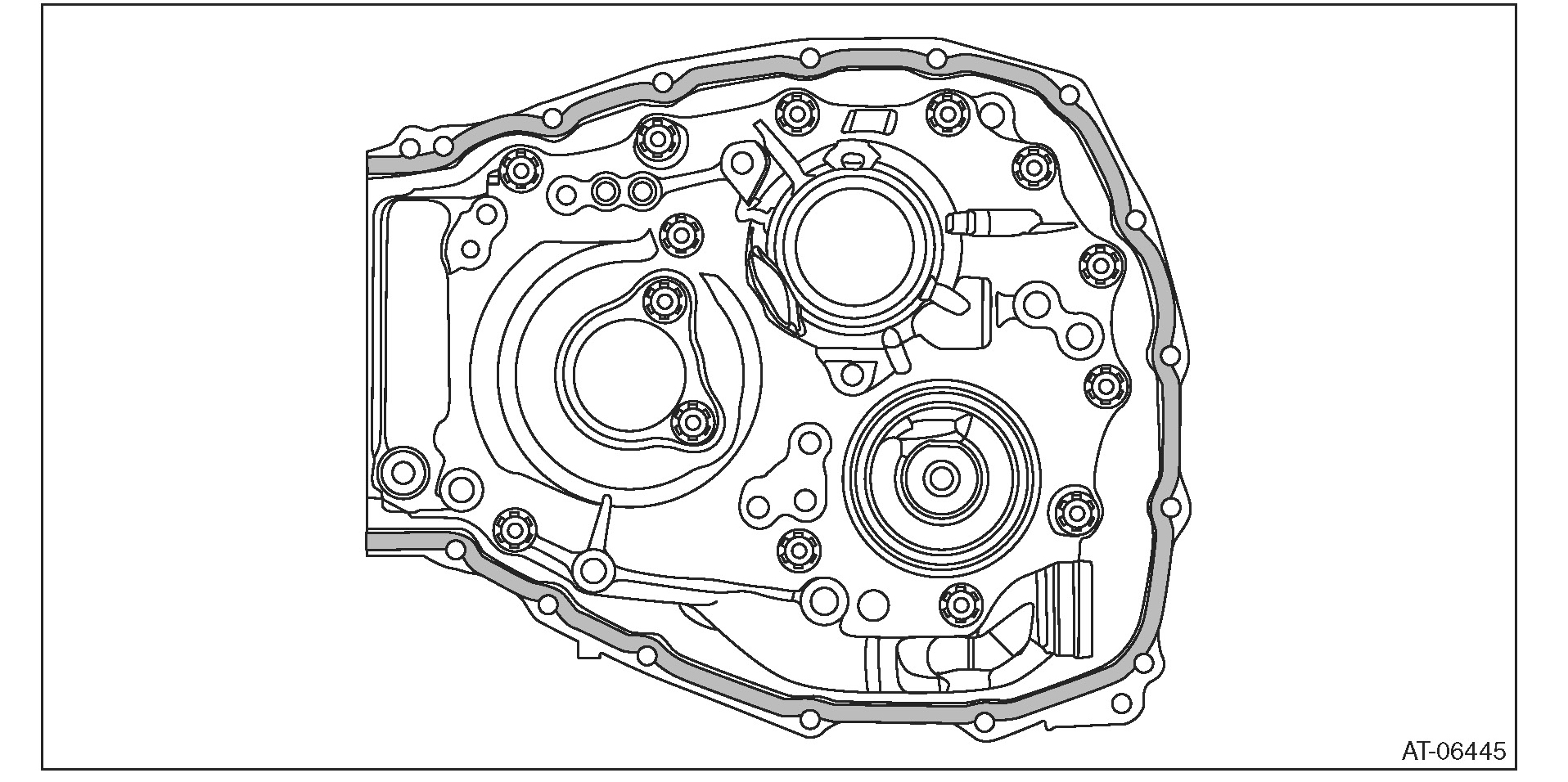 7) Apply liquid gasket seamlessly to the mating surface of transmission case.