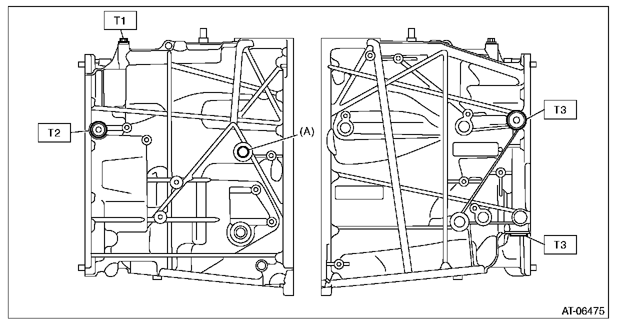^ For the plug (A), fill the CVTF, and then tighten the plug (A) using a new O-ring.
