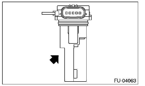 2. Check the voltage changes when air is blown to the mass air flow sensor unit in arrow direction.