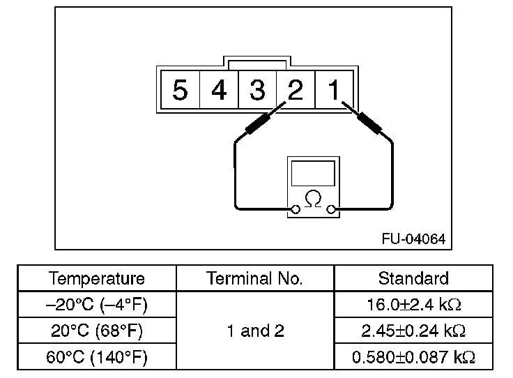Measure the resistance between intake air temperature sensor terminals.